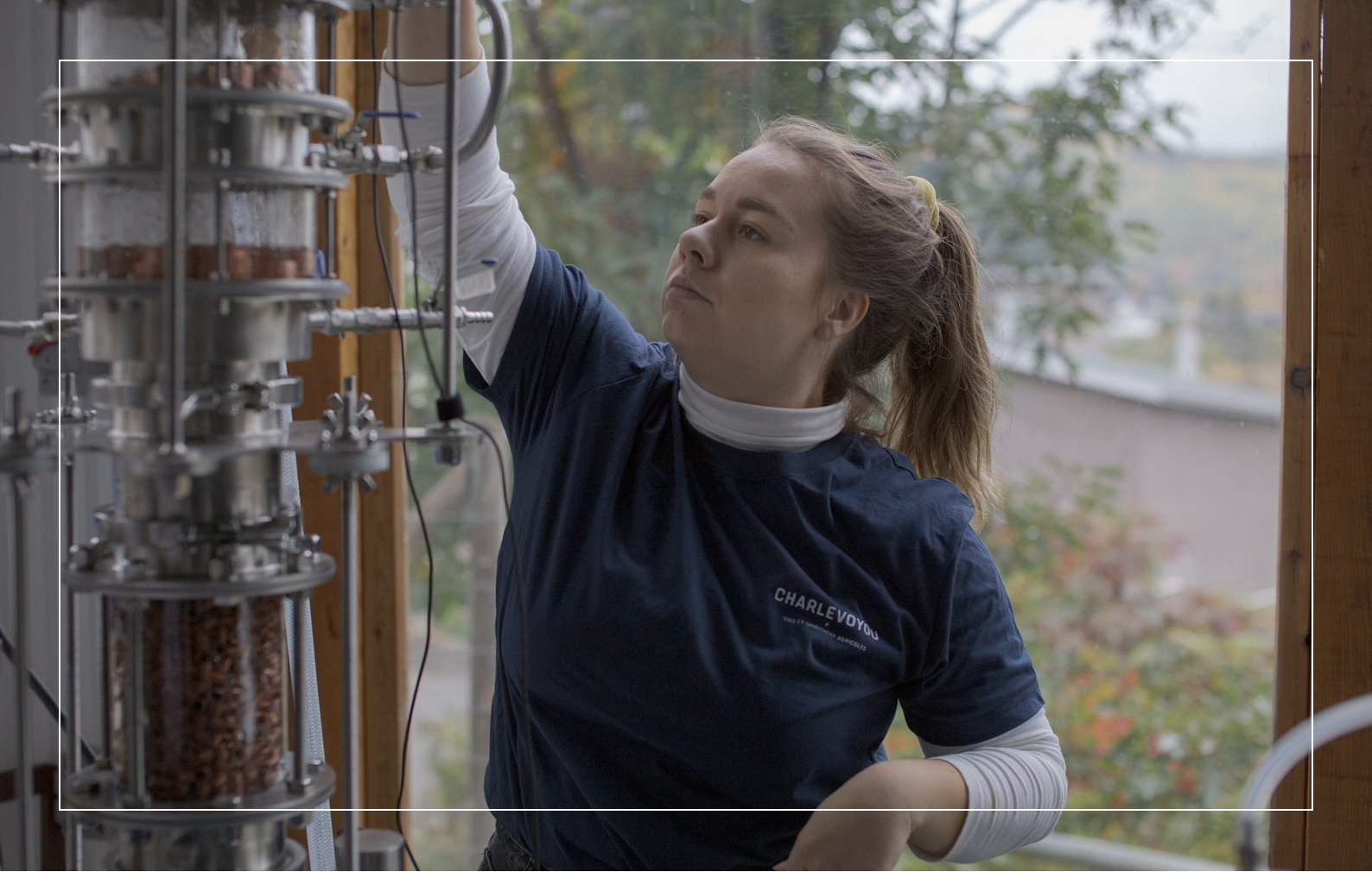 The Eau-de-vie de petit-lait offers an agricultural approach with a finesse worthy of the greatest spirits. Our Eau-de-vie contains NO LACTOSE. Lactose is actually the sugar that was used for fermentation. This spirit is distilled three times, and then reduced with water that’s coming from the family’s mountain. The eau-de-vie is a small amount of the ‘’heart’’ of distillation.